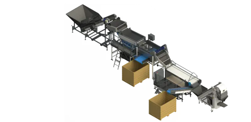 Het sorteerproces begint zodra de producten van het land worden gehaald. Bijvoorbeeld, wanneer aardappelen van het veld komen, moeten ze veilig en snel naar de verwerkingsruimte worden gebracht. Dit gebeurt doorgaans via een stortbak van bijvoorbeeld Broson die de aardappelen opvangt en ze naar een transportband van bijvoorbeeld KMK leidt. Deze transportband zorgt ervoor dat de producten verder gaan naar de volgende stap in het sorteerproces.