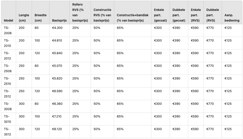 - Complete RVS constructie inclusief zandstralen (incl. RVS rollen): Geschikt voor veeleisende omgevingen waar corrosiebestendigheid en hygiëne van groot belang zijn.