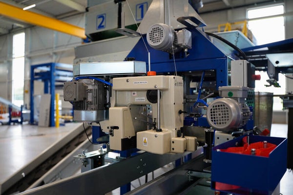 De halfautomatische naaistraat is ontworpen om zakken van 10 kg, 25 kg, en 50 kg probleemloos te verwerken. De machine neemt de zakken na het handmatig ophangen over, voegt een kaart toe en naait de zakken dicht. Dankzij het flexibele ophangsysteem kan de machine gecombineerd worden met diverse afweegmachines.