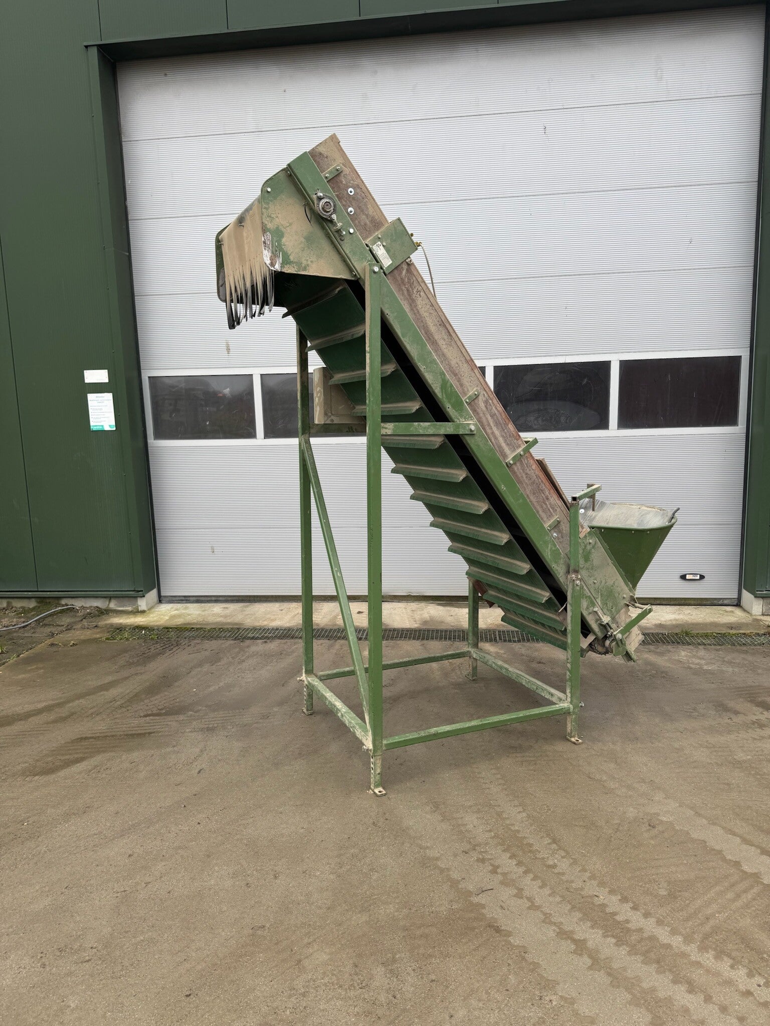 Aangeboden; een gebruikte opvoerelevator van het merk Schouten.